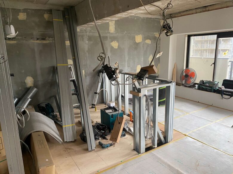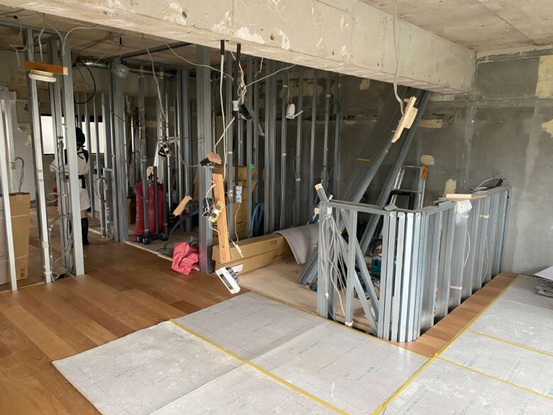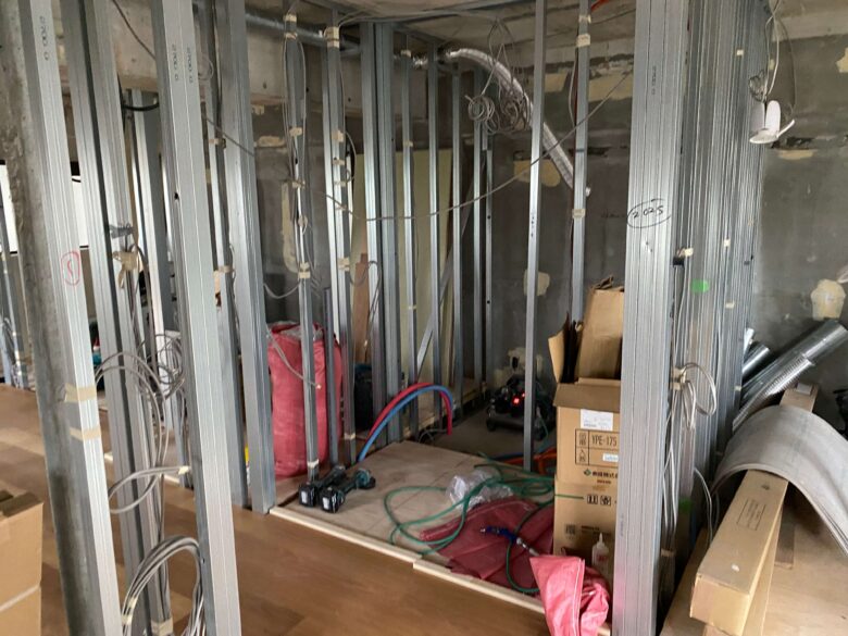 ついに「骨組み(軽量鉄骨の下地)」が立ち上がりました。